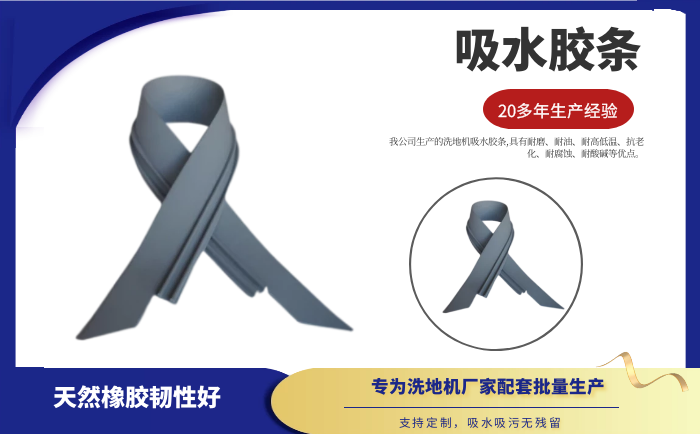 產品說明:吸水膠條是洗地機吸水扒上的重要部件,作用就是與地面接觸,產生一個密封的空間,把地面上的污水通過風機進行回收。吸水膠條一般分為耐油型(進口PU原料)和普通型(進口NR原料)兩種。