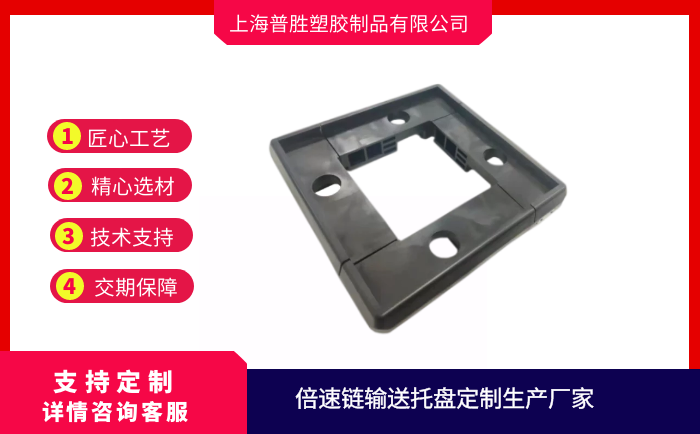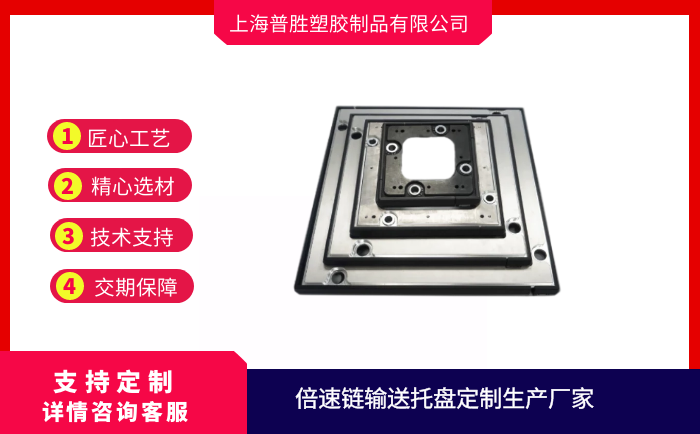 倍速鏈輸送托盤是自動化生產(chǎn)線必不可少的輸送工裝,它是直接放置在鏈條滾輪上方的承載物,被輸送的物料或工件直接放置在托盤上,因此工件托盤是根據(jù)被輸送工件的形狀和尺寸專門設(shè)計的,由于托盤是放置在倍速鏈鏈條上隨鏈條一起運(yùn)動的,托盤有金屬材質(zhì)及塑料材質(zhì),框架上有耐磨條。托盤輸送過程中會產(chǎn)生損傷,為了便于安裝,因此在托盤的4個角安裝滾輪,托盤的最外邊與線體內(nèi)側(cè)預(yù)留10mm間隙,防止運(yùn)行過程中與線體邊緣出現(xiàn)卡滯現(xiàn)象。